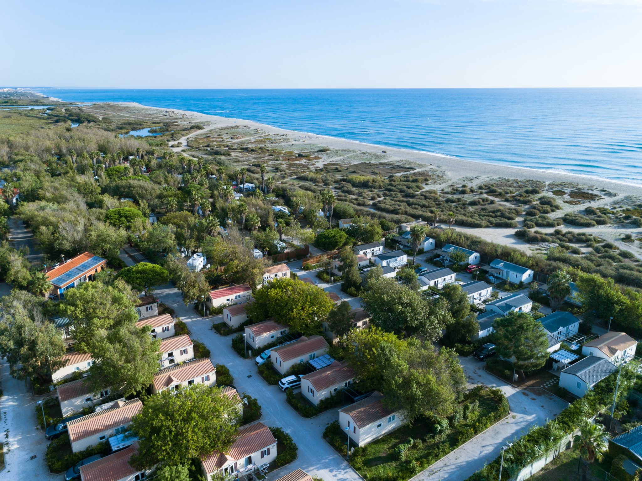 La situation géographique du camping, entre plage et nature, vous offre un cadre rare dans la région de Perpignan : à la fois calme, spacieux (7,2 hectares semi-ombragés) et ouvert sur la mer.